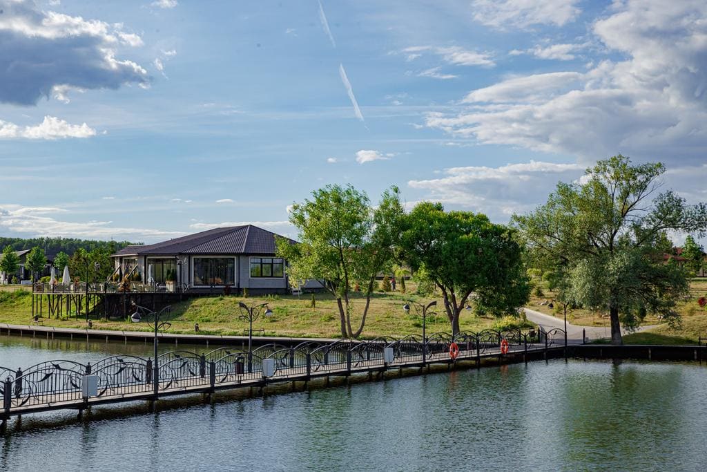 Стильная база отдыха в Подмосковье находится в поселке Овечкино. На зеленой территории стоят красивые коттеджи и домики. Особенно хороши так называемые домики на воде — круглые, с панорамным остеклением и видом на озеро. Здесь приятно провести выходные всей семьей и в компании друзей. Для любителей рыбалки тут просто рай: клюет форель, осетр, сиг, судак, окунь, налим разные виды карпов.